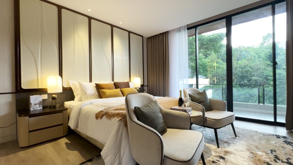 Kamar tidur utama berada di lantai 3, menghadirkan suasana super private serta potensi pemandangan yang lebih terbuka.