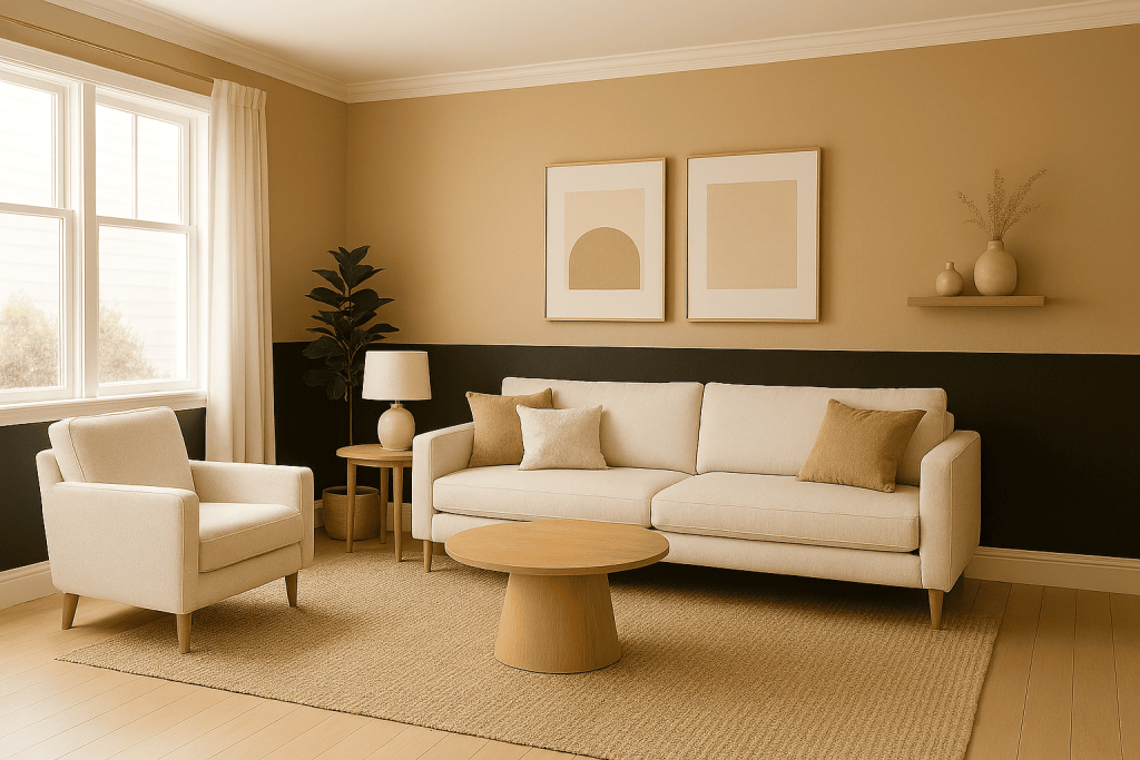 Butuh ide kombinasi warna cat ruang tamu yang aman dan elegan? Hitam-putih tidak pernah salah. Putih memperluas ruang; hitam memberi kedalaman. Kombinasi ini ideal untuk interior modern minimalis dan sangat mudah disesuaikan dengan dekorasi apapun.
