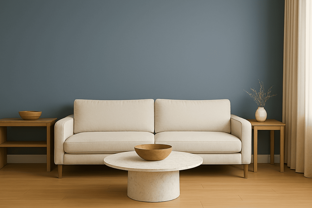 Biru keabu-abuan ini memberi efek menenangkan sekaligus menambah kedalaman visual. Stormy blue cocok untuk Anda yang ingin ruang tamu tampak dewasa tapi tetap cozy. Warna ini juga masuk dalam kategori warna cat ruang tamu yang bagus untuk ruangan berukuran medium.